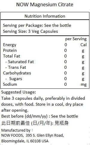 NOW Foods 檸檬酸鎂 120粒素食膠囊 [香港行貨]