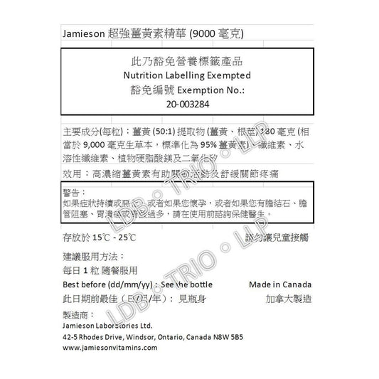 Jamieson 特強薑黃素精華 (9000 毫克) 30 粒 包裝隨機提供)[平行進口] 此日期前最佳:2026年07月31日