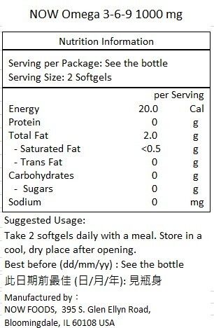NOW Foods Omega-3-6-9 1,000 毫克 100 粒軟膠囊(每粒軟膠囊 500 毫克) [香港行貨]