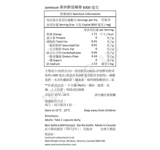 Jamieson 南非醉茄精華 6000 毫克 60粒 [平行進口]