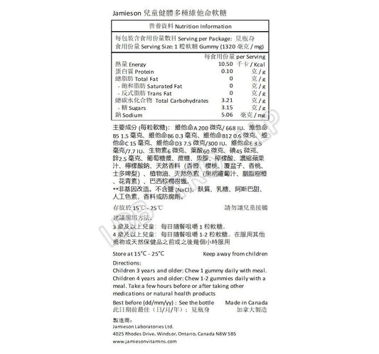 Jamieson 兒童複合維他命軟糖 混合水果口味 130 顆軟糖 [平行進口]