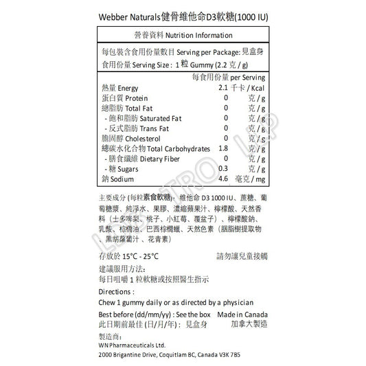 Webber Naturals 健體護骨維他命 K2 (120 微克)+ 維他命 D3 (1000 IU) 30 粒 [平行進口]