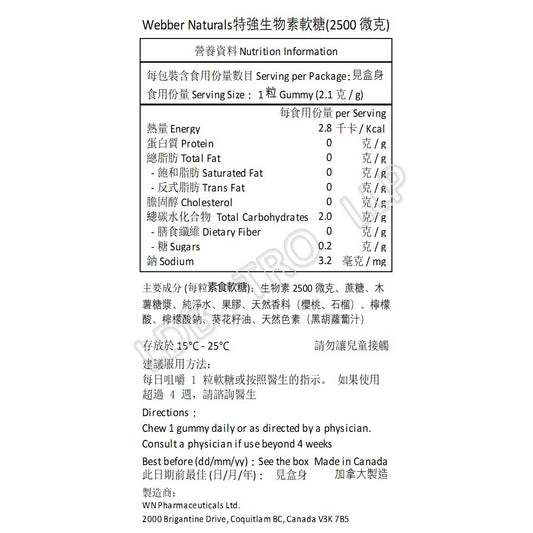 Webber Naturals 是北美最大的天然營養補充品與優質保健食品製造商之一。於世界各地購買最上乘的原材料,然後對其進行製劑、加工與檢測,從而使客人可以買到物有所值的絕佳營養補充品。