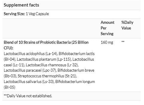 嗜酸乳桿菌 (La-14)、乳雙歧桿菌 (BI-04)、植物乳桿菌 (Lp-115)、乾酪乳桿菌 (Lc-11)、鼠李糖乳桿菌 (Lr 32)、副乾酪乳桿菌 (Lpc-37)、短雙歧桿菌 ( Bb-03)、嗜熱鏈球菌 (St-21)、唾液乳桿菌 (Ls-33)、長雙歧桿菌 (BI-05)