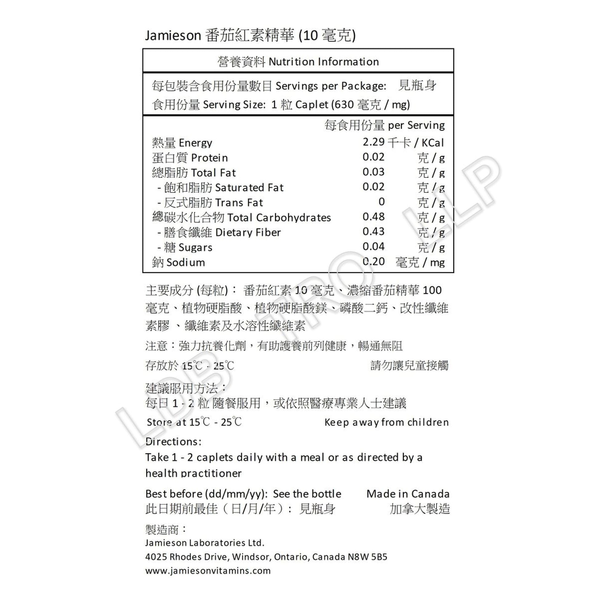 Jamieson 番茄紅素精華 (10 毫克) 60 粒 (兩款包裝隨機提供)[平行進口]