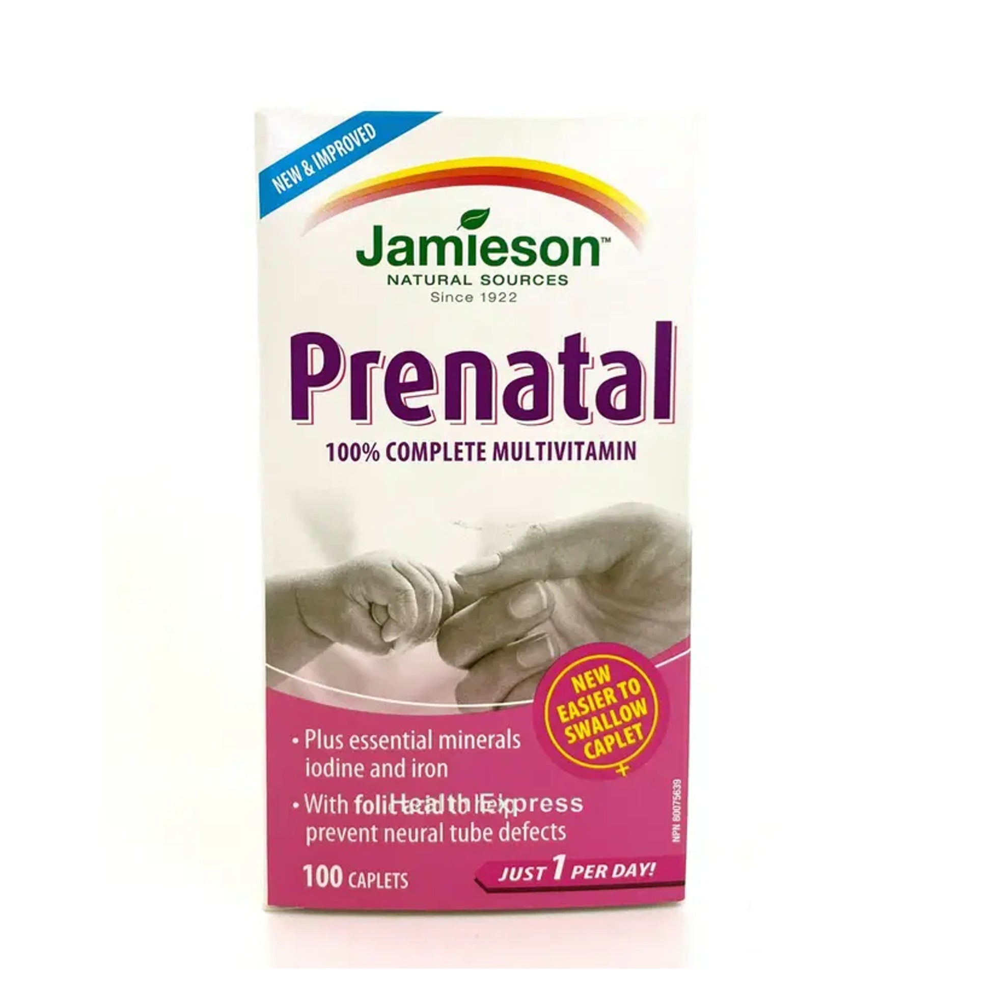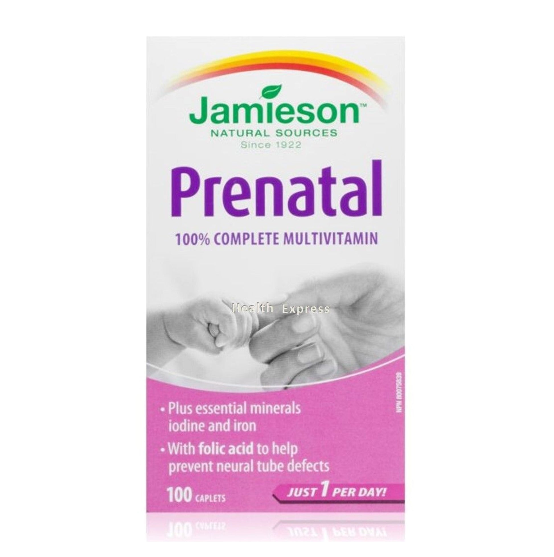 Jamieson 100% 孕婦多種維他命 (全新配方) 是一種完整的產前和產後多種維生素,每天只需一粒藥片就可為孕婦提供100%或更多的維他命! 含有豐富的葉酸,有助大腦神經發育,並確保母親獲得寶寶整體健康所需的必需維他命。