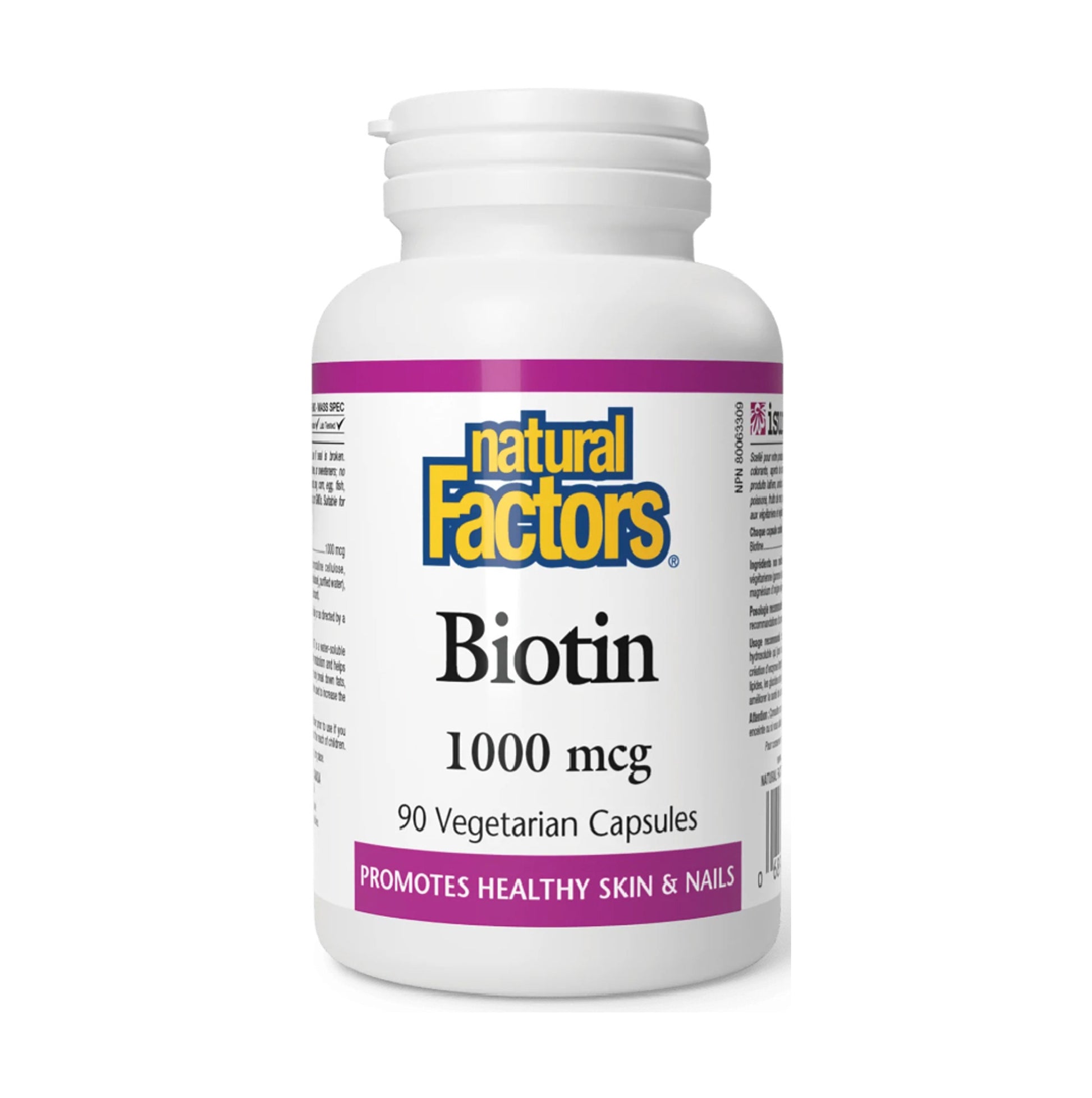 Natural Factors 能量生物素 (1000 微克) 可促進堅固,健康指甲、頭髮及皮膚。 生物素是一種B複合維他命(B7),對碳水化合物、脂肪及蛋白質的消化至關重要,有助將食物轉化為能量。主要成分及含量:每粒膠囊包含:生物素 - 1000 微克其他成份:微晶纖維素、素食膠囊(碳水化合物膠[纖維素] 、純淨水)、植物硬脂酸鎂(潤滑劑)平行進口注意事項:以上產品為日常生活保健食品而非醫藥用品,無醫療功效。 以上產品沒有根據《藥劑業及毒藥條例》或《中醫藥條例》註冊。 為此以上產品作出的任何聲稱亦沒有為進行該等註冊而接受評核。 此產品並不供作診斷、治療或預防任何疾病之用。 本資料只供參考,並不作診斷或治療之用。 由於原材料採購受季節影響,每批製成品的顏色或有不同,惟絕不影響產品質素及功效,安全食用。